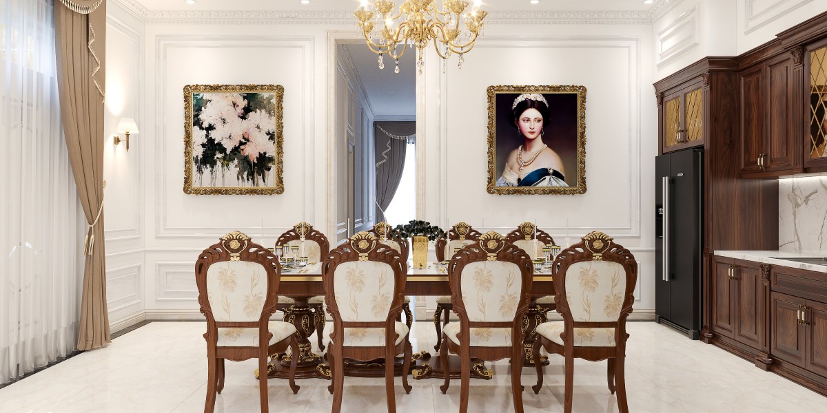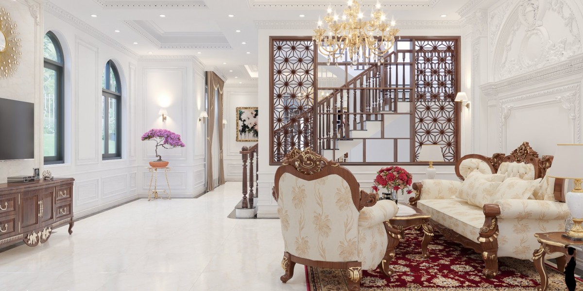 Mấu chốt làm nên sự tinh tế của biệt thự tân cổ điển đó là do được ứng dụng những quy tắc về tỷ lệ bố trí nội thất phong cách cổ điển. Tỷ lệ vàng, luật đối xứng, tính cân đối,.. được áp dụng linh hoạt. Nhằm mang đến một không gian sống vừa hài hòa, vừa có điểm nhấn.