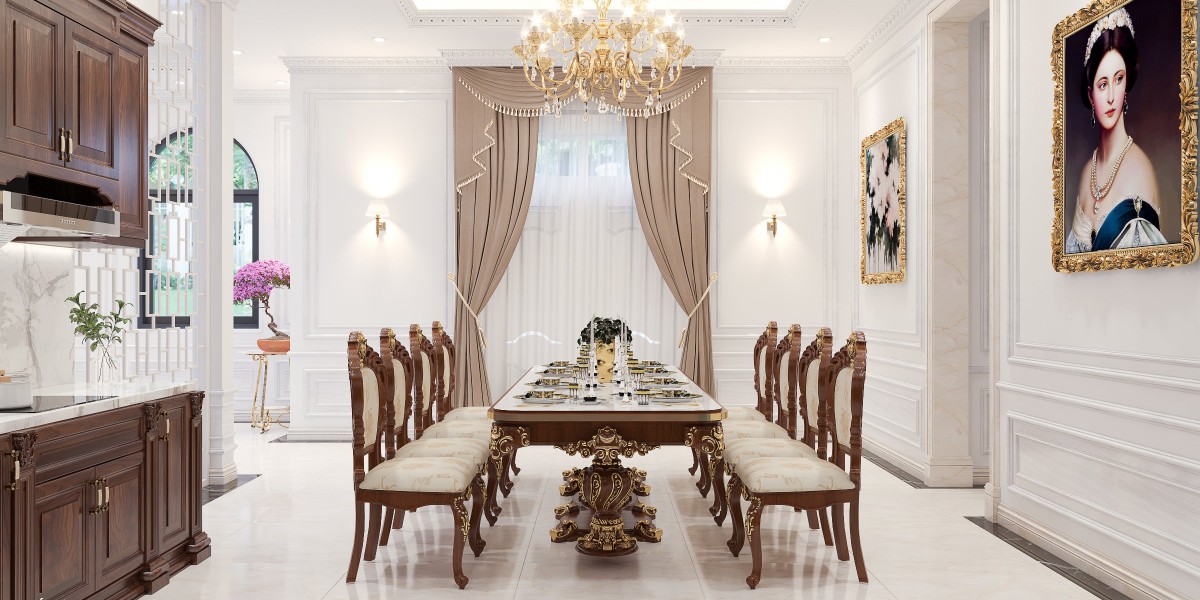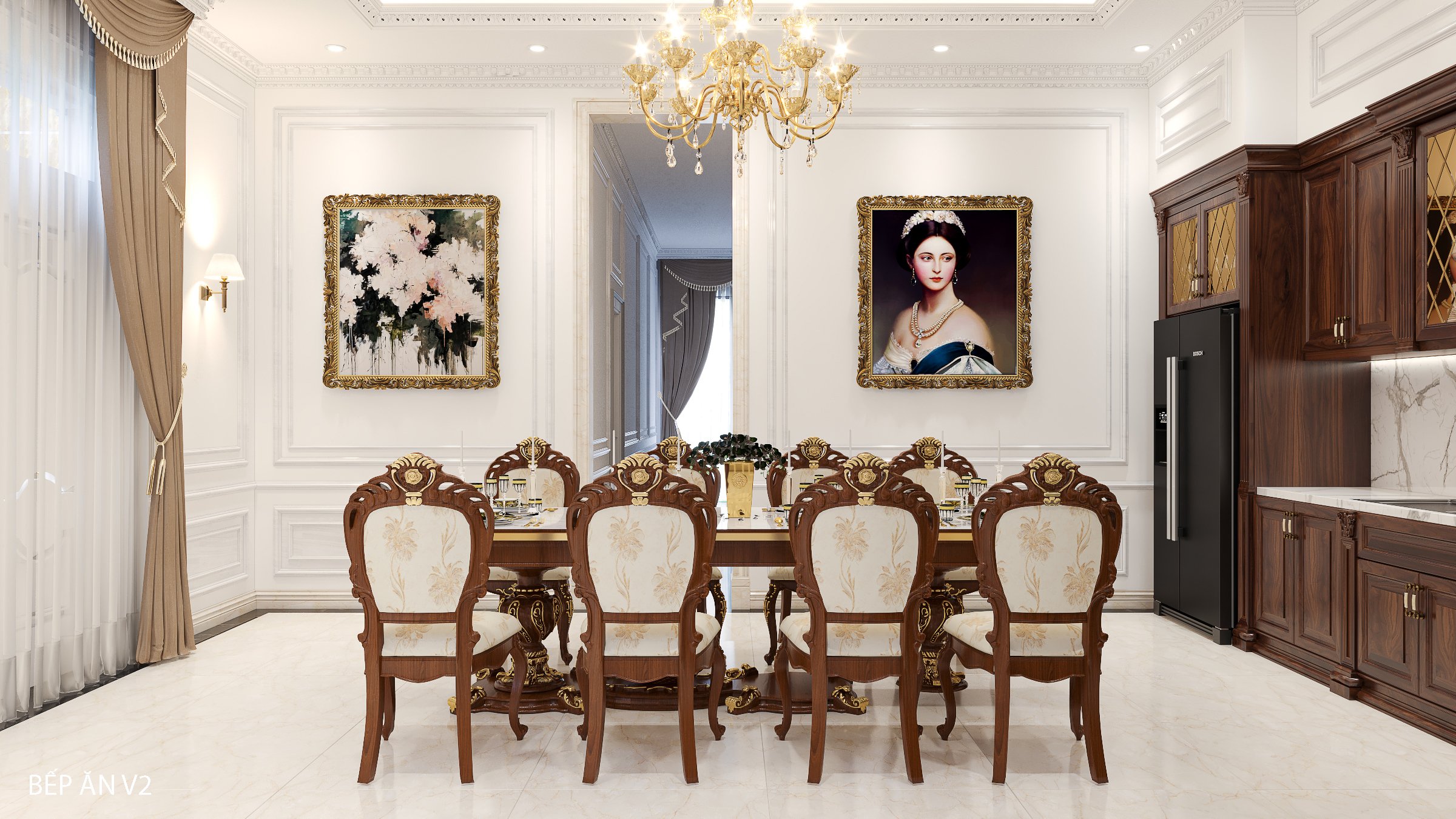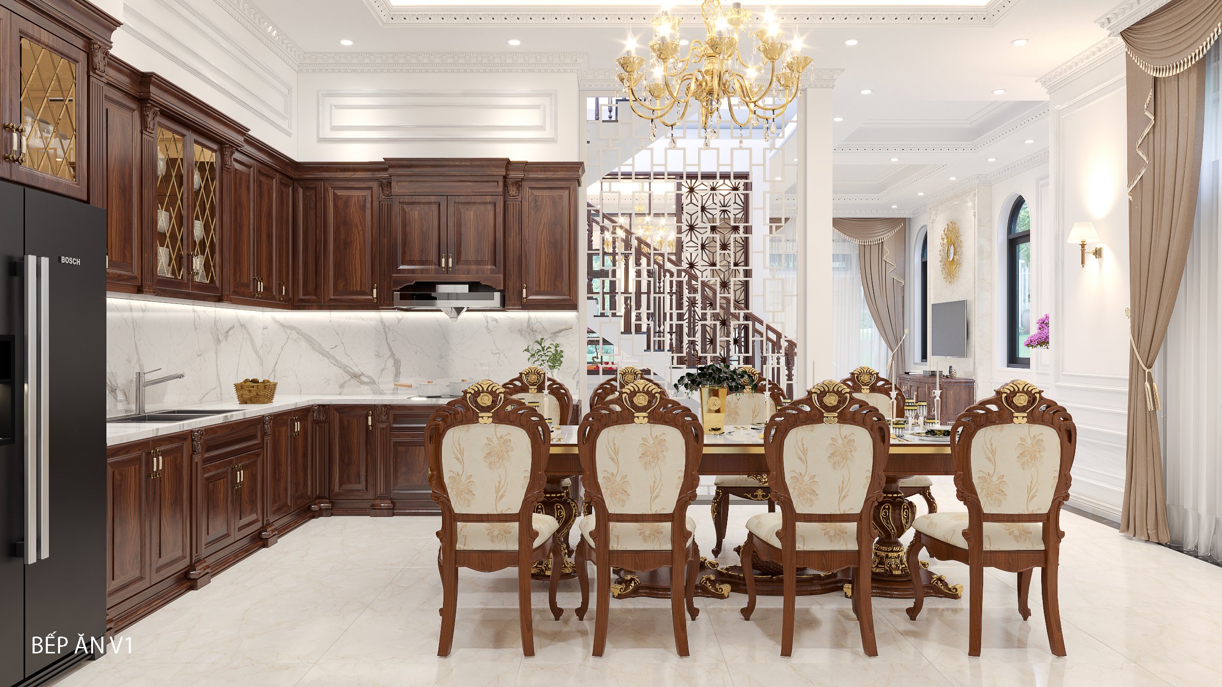 Thiết kế nội thất phòng bếp, phòng ăn cho biệt thự cao cấp