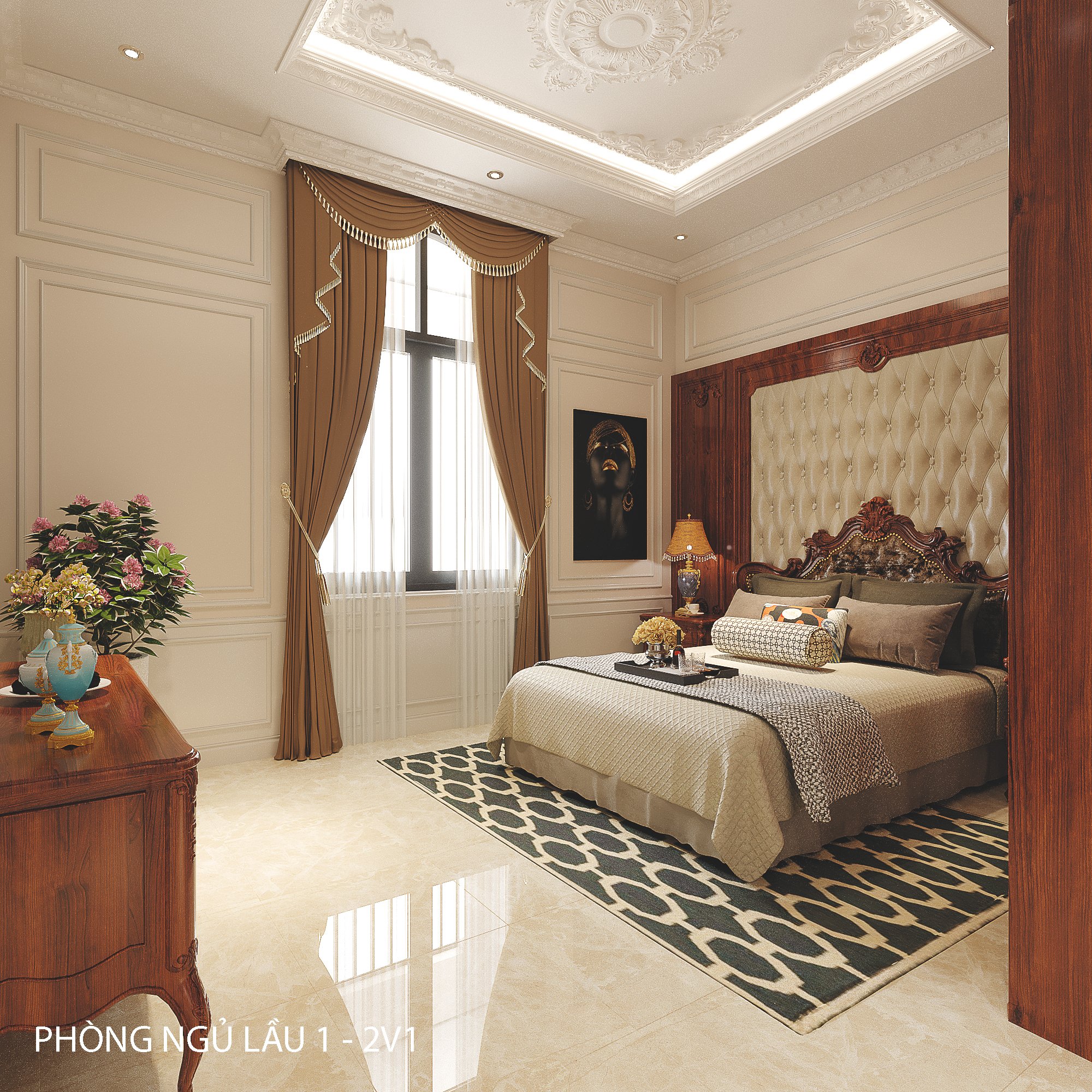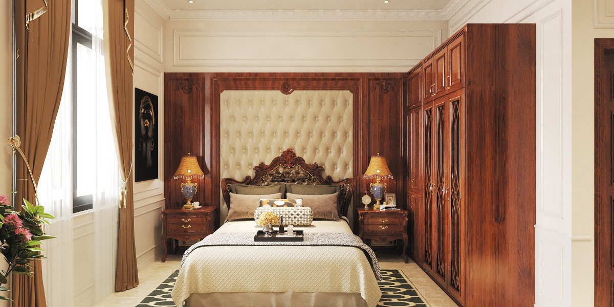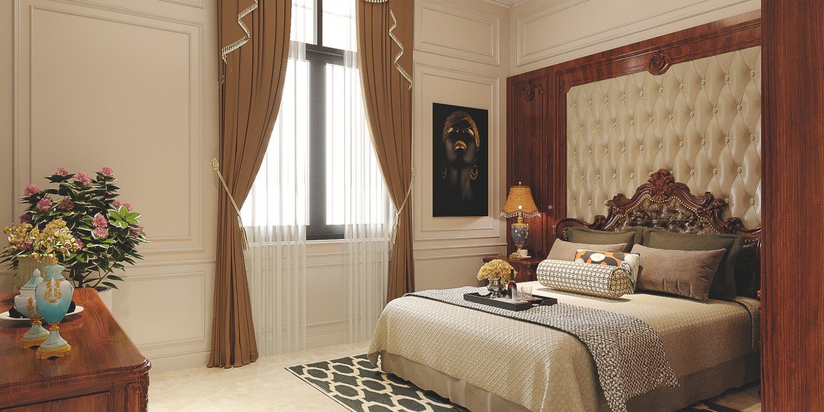 Phòng ngủ Master (phòng ngủ chính) của gia đình thường đem lại cảm giác sang trọng trong trang trí nội thất. Căn phòng sử dụng những chất liệu với màu sắc trung tính. Đó chính là màu trắng và be làm tông màu chủ đạo. Nó vừa tạo cảm giác quý phái lại ấm cúng. Nội thất tủ gỗ được thiết kế dọc sát tường dẫn vừa tiết kiệm diện tích lại mang lại vẻ đẹp tinh tế, sang chảnh. Hơn nữa, căn phòng tràn ngập ánh sáng qua thiết kế của cửa sổ tránh không gian bí bức.