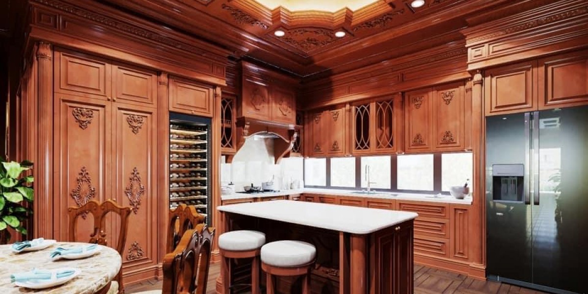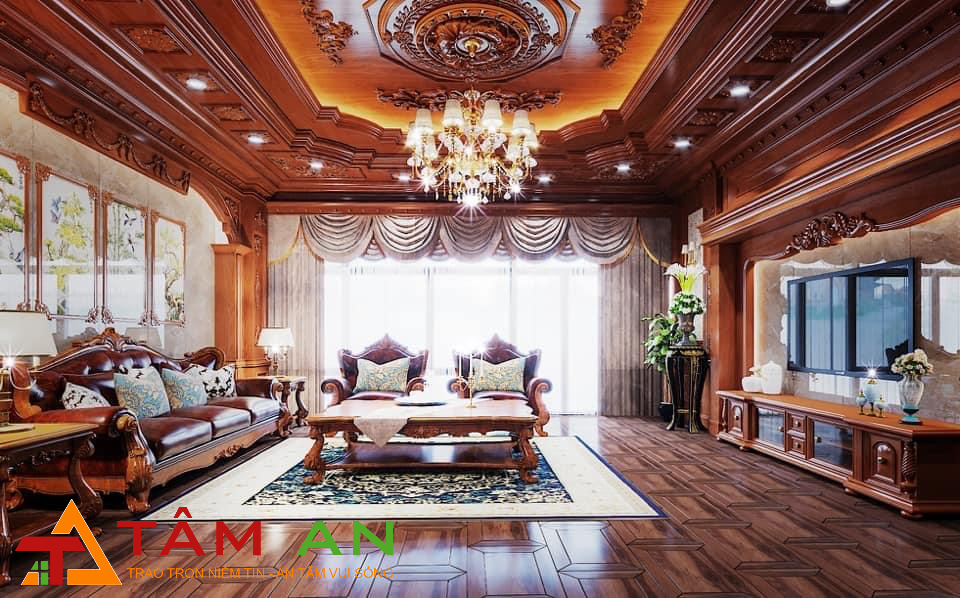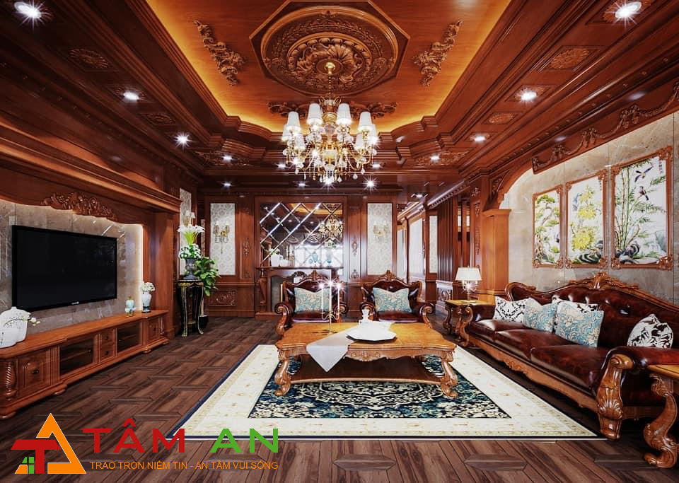 Không gian nội thất bên trong sử dụng gỗ là chính, vì sở thích đồ gỗ cũng như đặc điểm của gỗ giúp không gian thêm sang trọng, trầm ấm và mang một nét quý phái cho gia chủ.