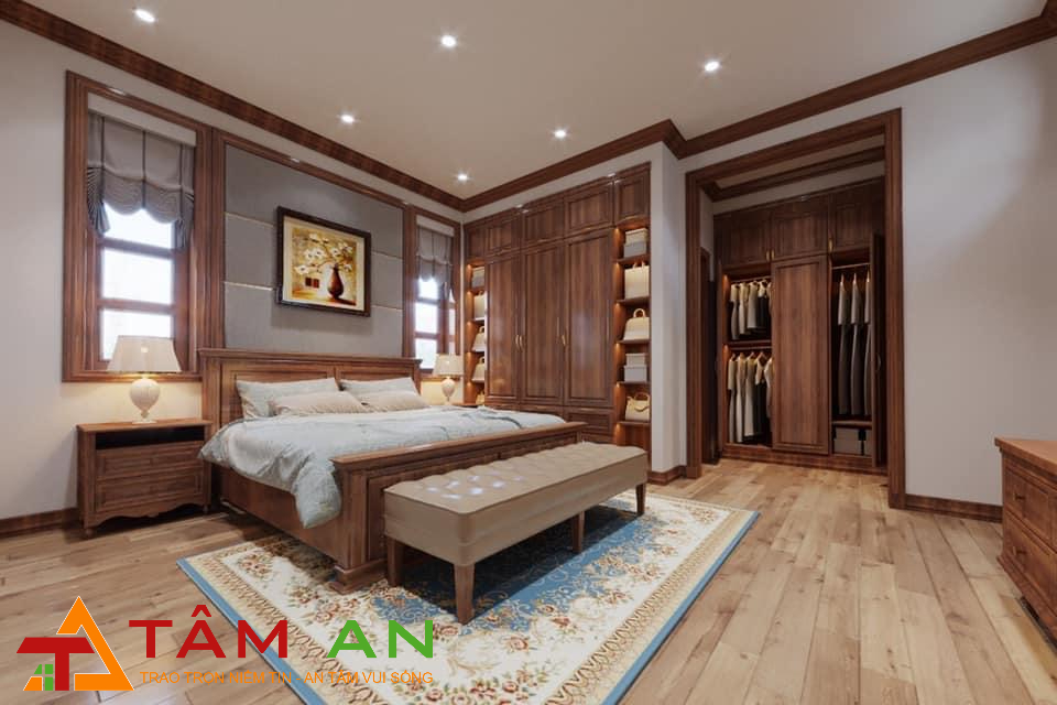 Phòng ngủ Master rộng rãi, 45m2, bao gồm không gian ngủ chính, phòng thay đồ áo và phòng wc.
