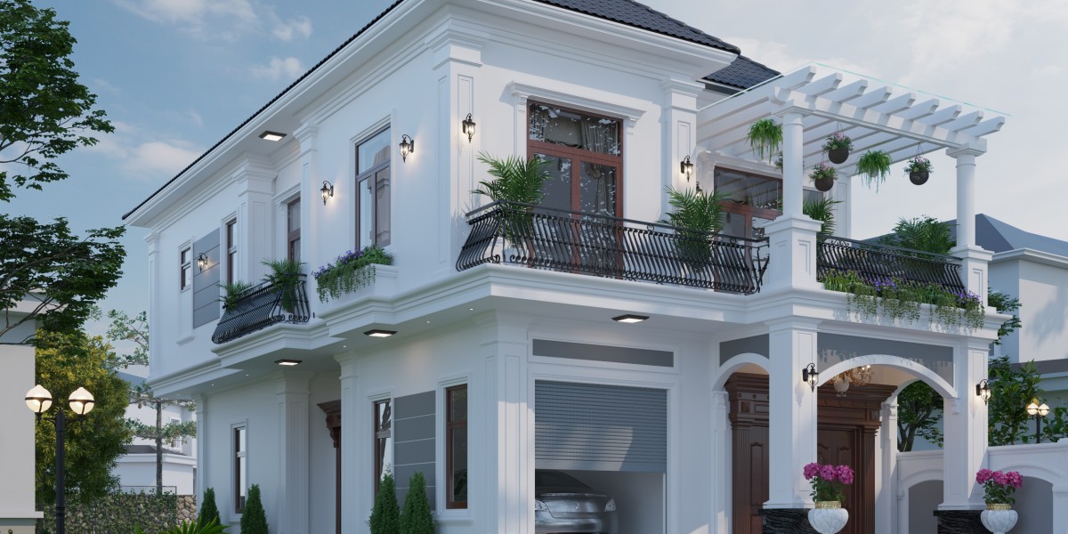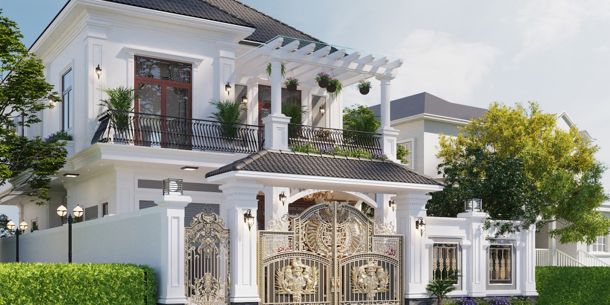 Kiến trúc biệt thự được rất nhiều chủ đầu tư lựa chọn bởi thiết kế đơn giản với vẻ đẹp thanh lịch, tinh tế. Nhà anh Ninh - chị Hương cũng là một trong những công trình sử dụng kiến trúc tân cổ điển. Đặc điểm của ngôi nhà qua phong cách thiết kế phong cách này được thổi hồn, mang âm hưởng kiến trúc Pháp nhưng lại lược gần như toàn bộ các chi tiết rườm rà. Không quá cầu kỳ, mẫu thiết kế biệt thự 2 tầng sử dụng tông màu sáng kết hợp các chi tiết với tỉ lệ vàng mãn nhãn từ những ánh nhìn đầu tiên.