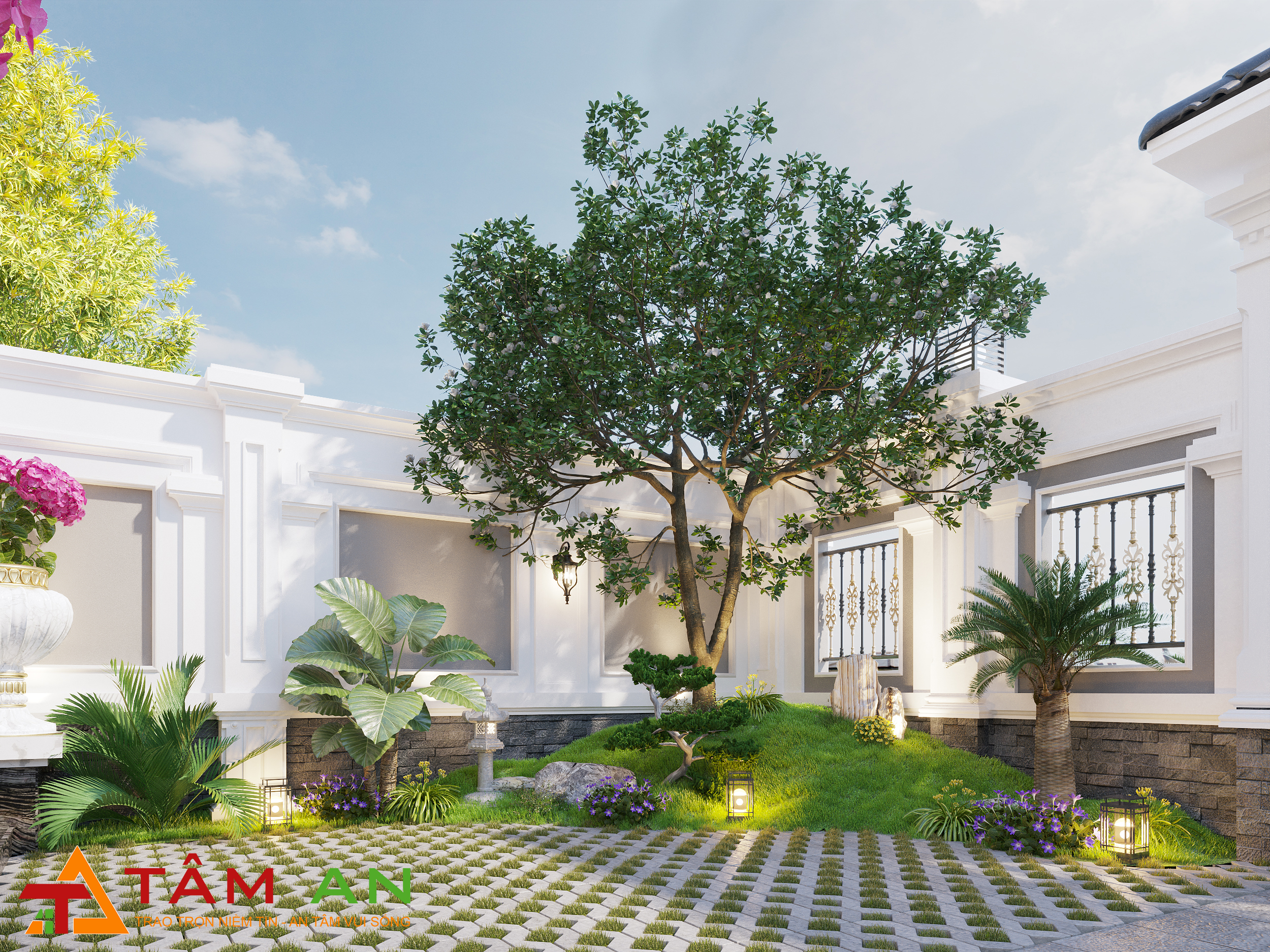 Vì là biệt thự cổ điển sở hữu các hình ảnh hoàng gia, cổ điển. Bố cục biệt thự cũng được chúng tôi tính toán đến từng chi tiết. Những hoa văn được khai thác từ những hình ảnh truyền thống cổ xưa. Sự cao sang và uy nghi được thể hiện một cách rõ nhất qua biệt thự cổ điển. Biệt thự cao cấp cổ điển chú trọng đến sự cân đối và hài hòa. Tâm An bố cục, chất liệu cho đến màu sắc phải có sự sắp xếp đối xứng nhất. Mang dấu ấn của 1 tòa lâu đài thu nhỏ, biệt thự có sự hài hòa giữa tự nhiên và nhân tạo, giữa âm và dương qua từng chi tiết xây dựng.