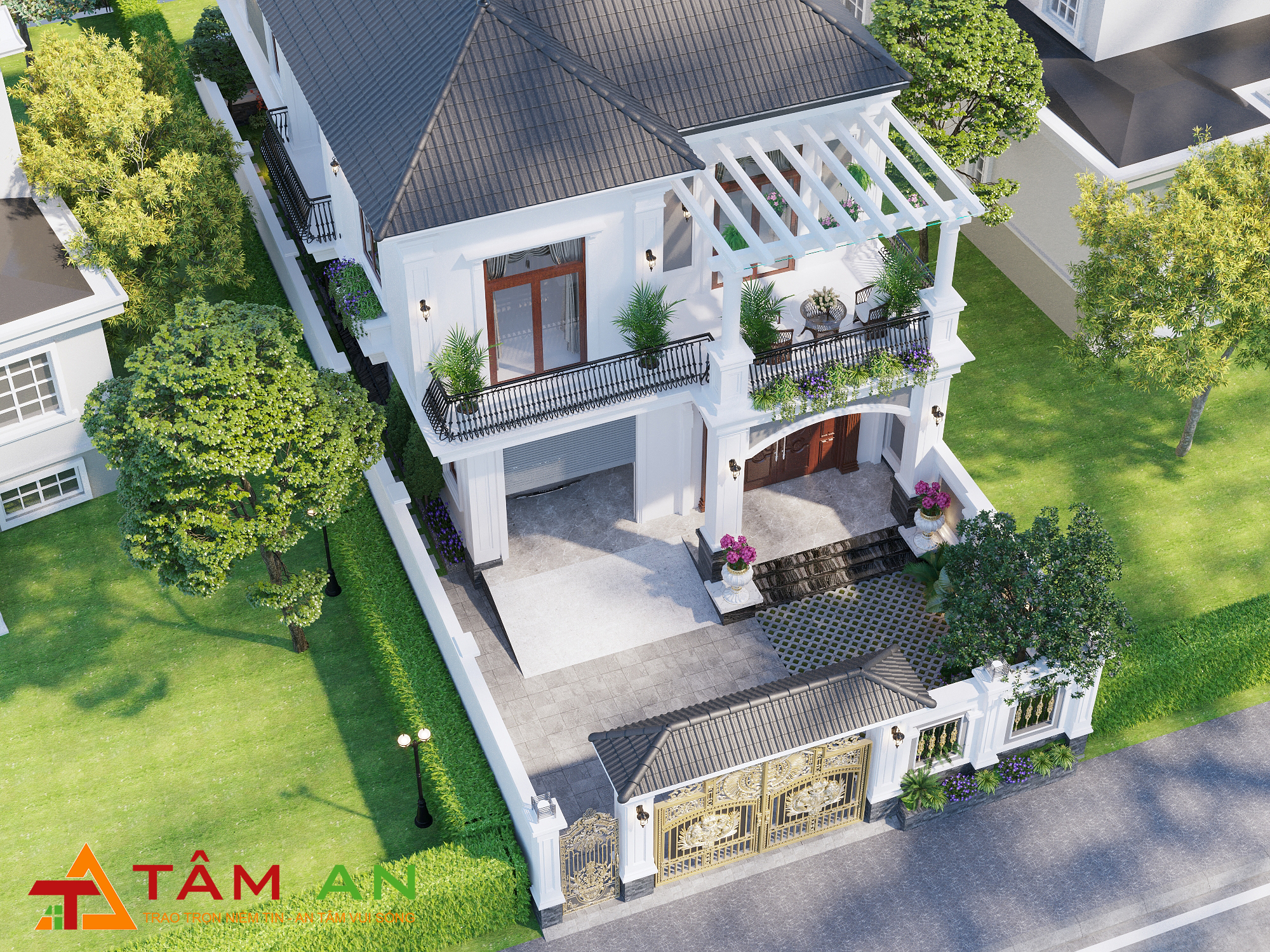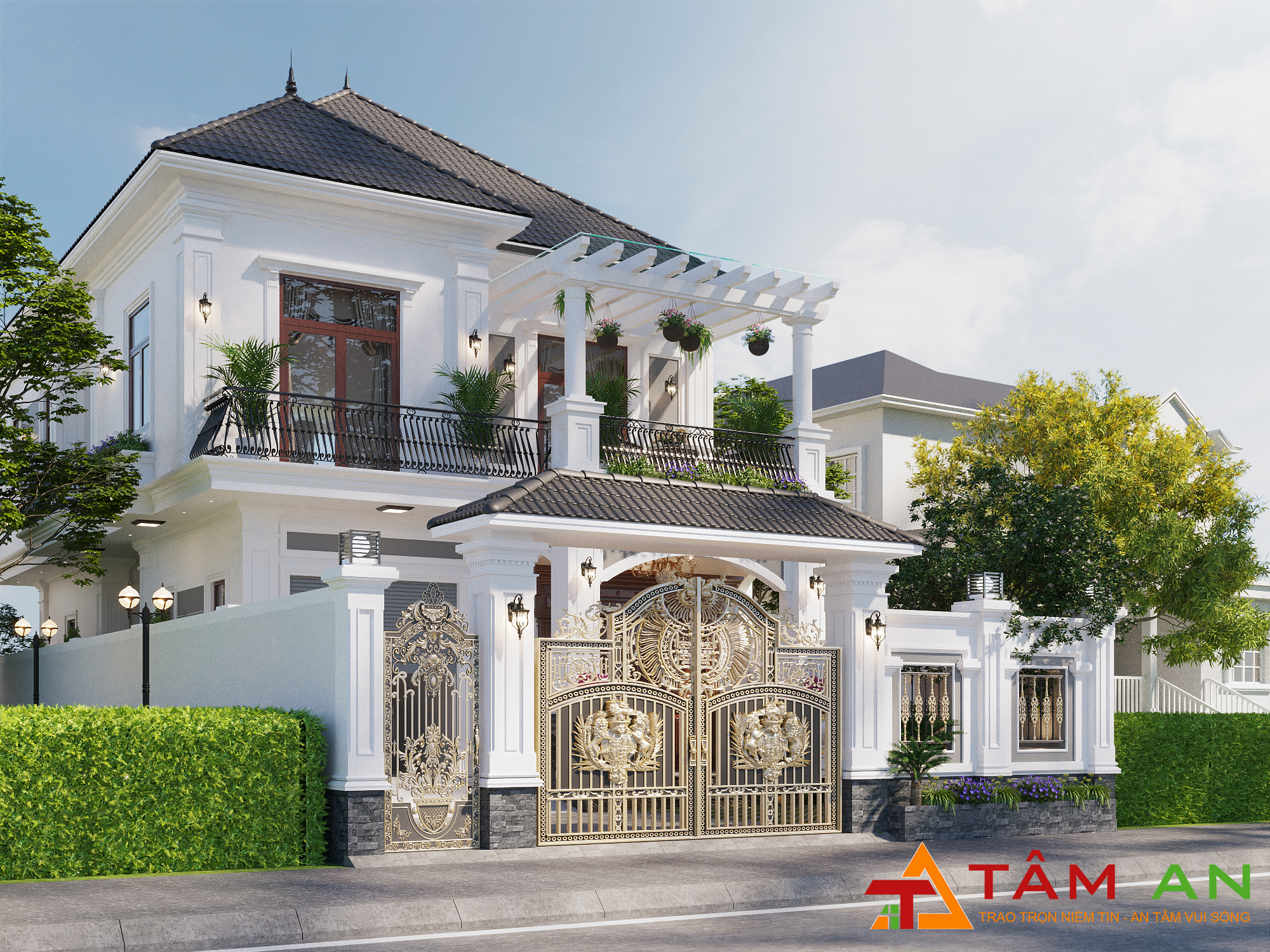 Nếu thiết kế chỉ là ý tưởng trên giấy, thì thi công chính là biến ý tưởng đó thành sự thật. Dù thiết kế có đẹp đến đâu thì nó cũng chỉ mang tính hình vẽ. Thi công không đúng không chỉ ảnh hưởng thời gian, tiền bạc. Mà còn đến cả cuộc sống và sự an toàn của gia đình. Vậy nên đơn vị chuyên thi công biệt thự tân cổ điển - Tâm An sẽ giúp cho chúng ta thực hiện những điều đó. Sau đây là mẫu biệt thự tân cổ điển Tâm An đã hoàn thành và được sự hài lòng tuyệt đối của gia chủ. Cùng tham khảo thiết kế nhà anh Ninh - chị Hương nhé!